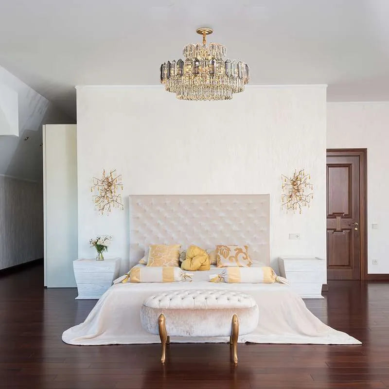 Moderne Kristall Gold-Deckenleuchte-Kronleuchter mit Kristall Tröpfchen-Hängelampe~2625