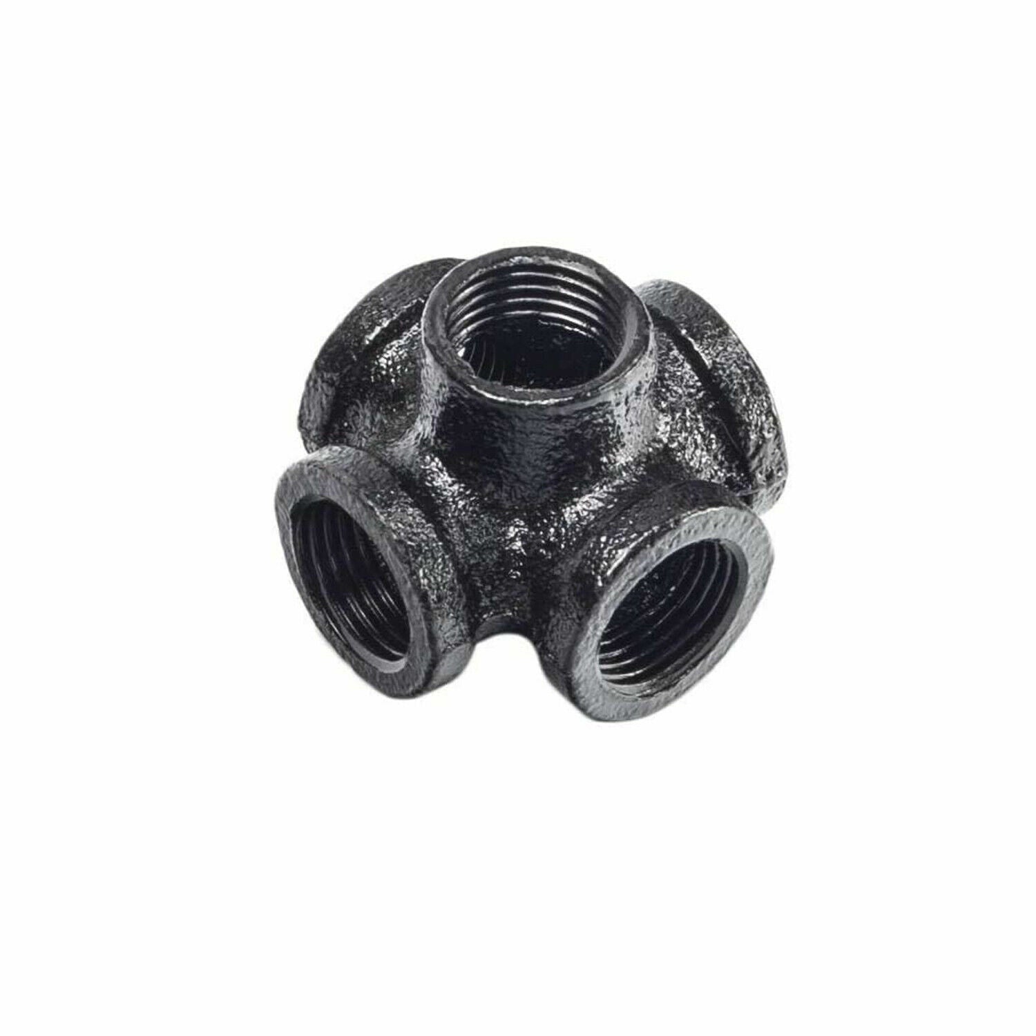 5-Wege Gusseisen Rohrverbinder | Steampunk Möbel Rohrfitting ~3215