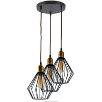 Vintage Hängeleuchte im Industrie Drahtkäfig Pendellampe ~3175
