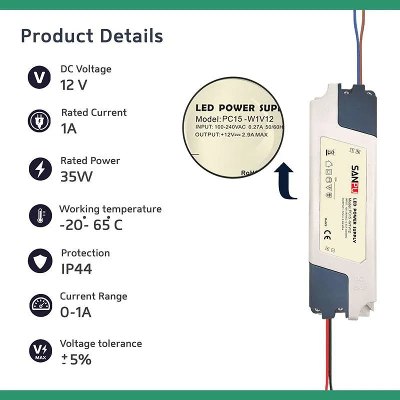 15W LED Netzteil 12V Schalt led trafo-Treiber Strip~1820