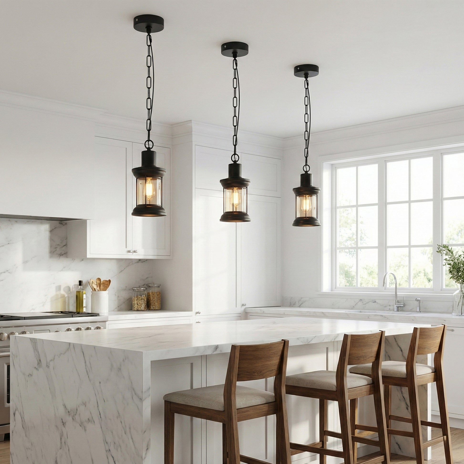 Der zylindrische Metallkäfig mit transparentem Glas sorgt für einen zeitlosen Look, der nie aus der Mode kommt. Ob Sie eine Bauernküche renovieren, ein modernes Loft entwerfen oder einem Geschäftsraum Charakter verleihen, diese Pendelleuchte liefert eine atemberaubende visuelle Wirkung.