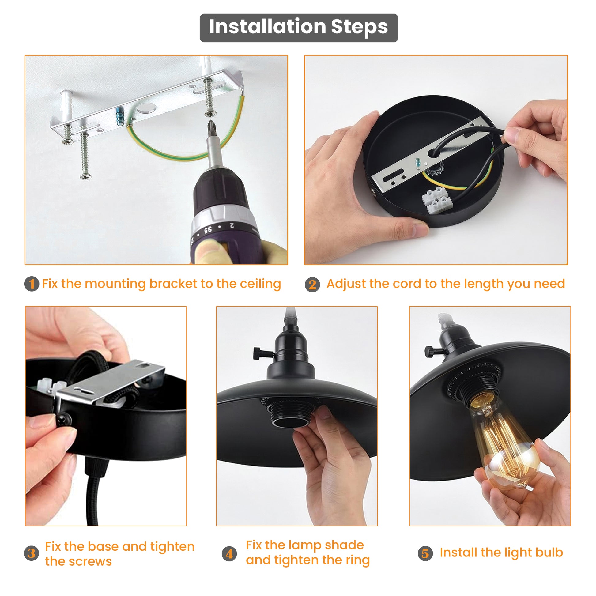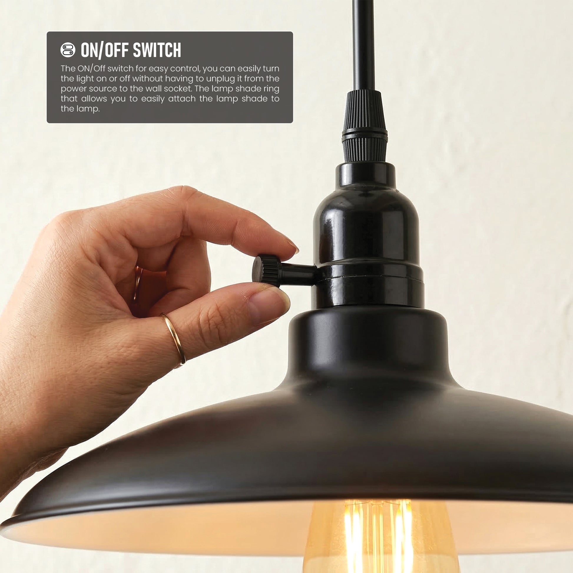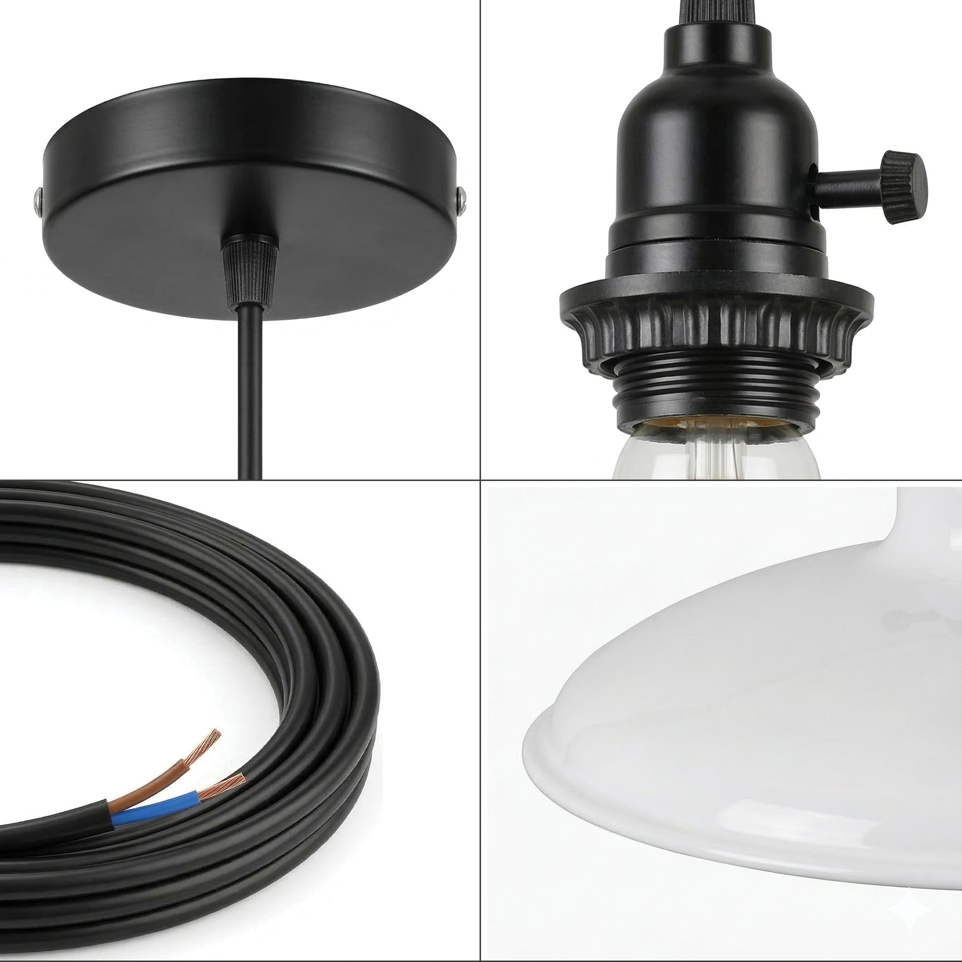 - Standard-E27-Fassung mit Drehschalter, kompatibel mit LED-, Edison- und Energiesparlampen.