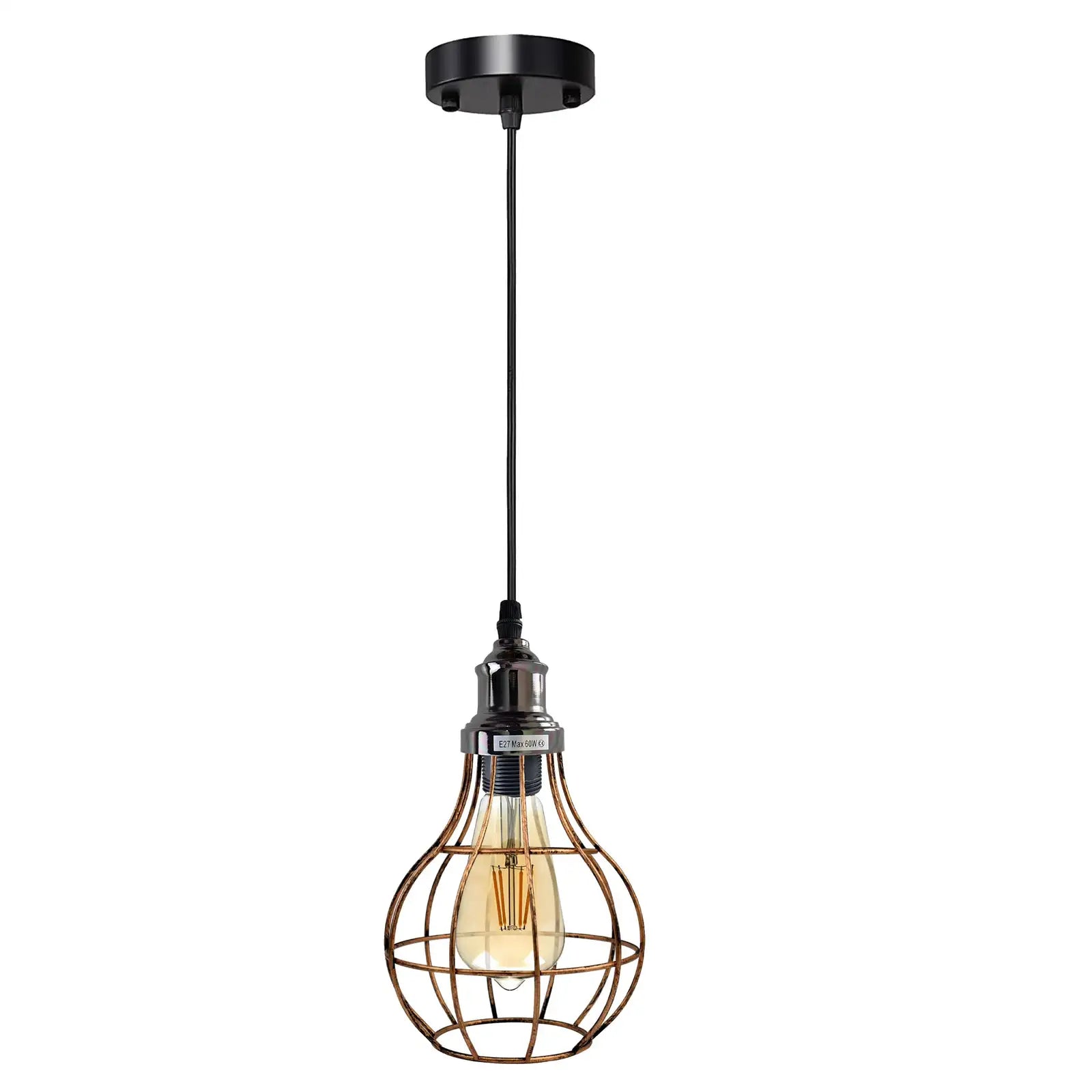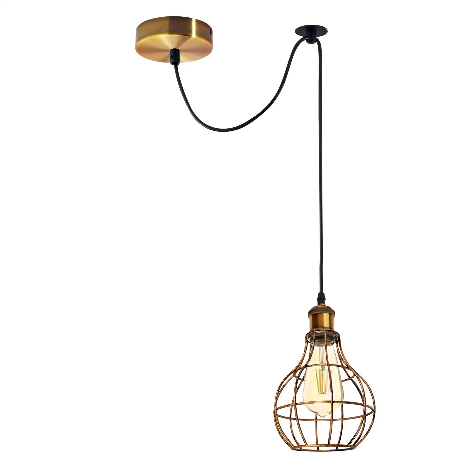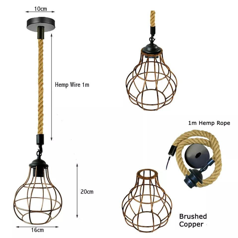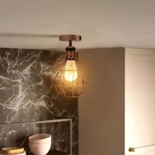Portalampada a gabbia a forma di vaso in metallo rame spazzolato~3182