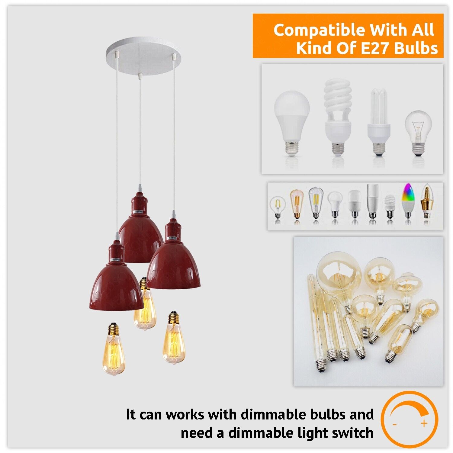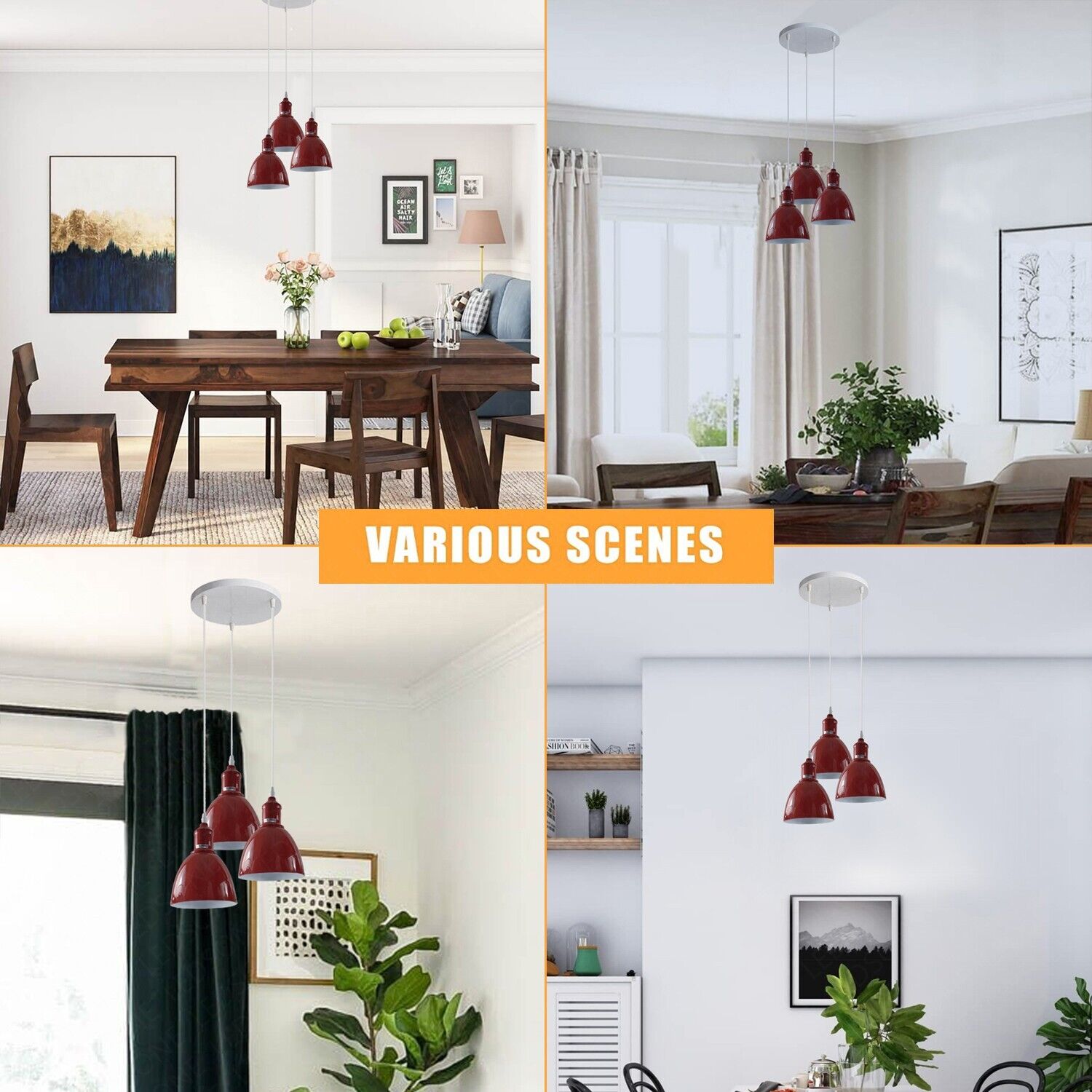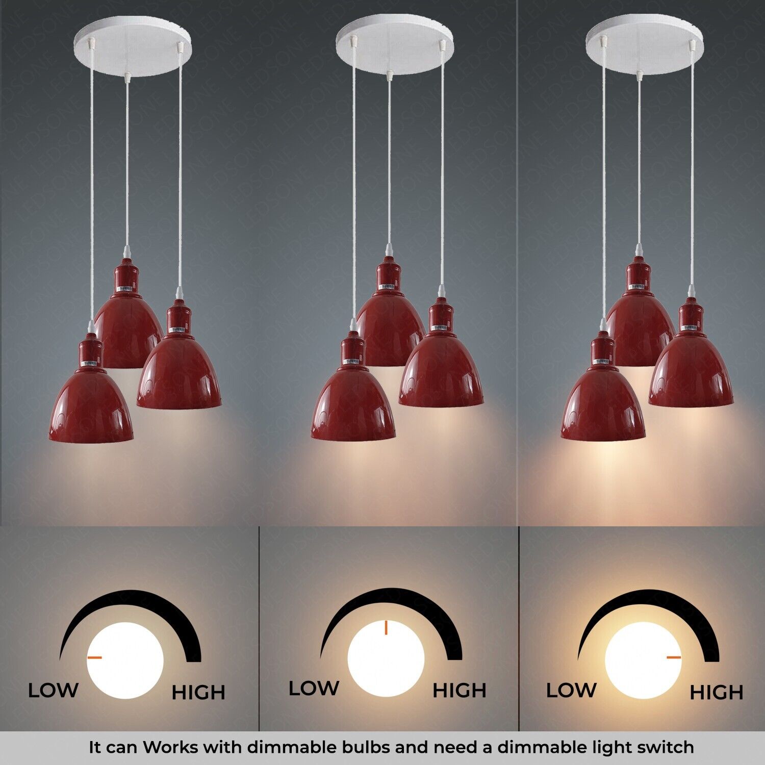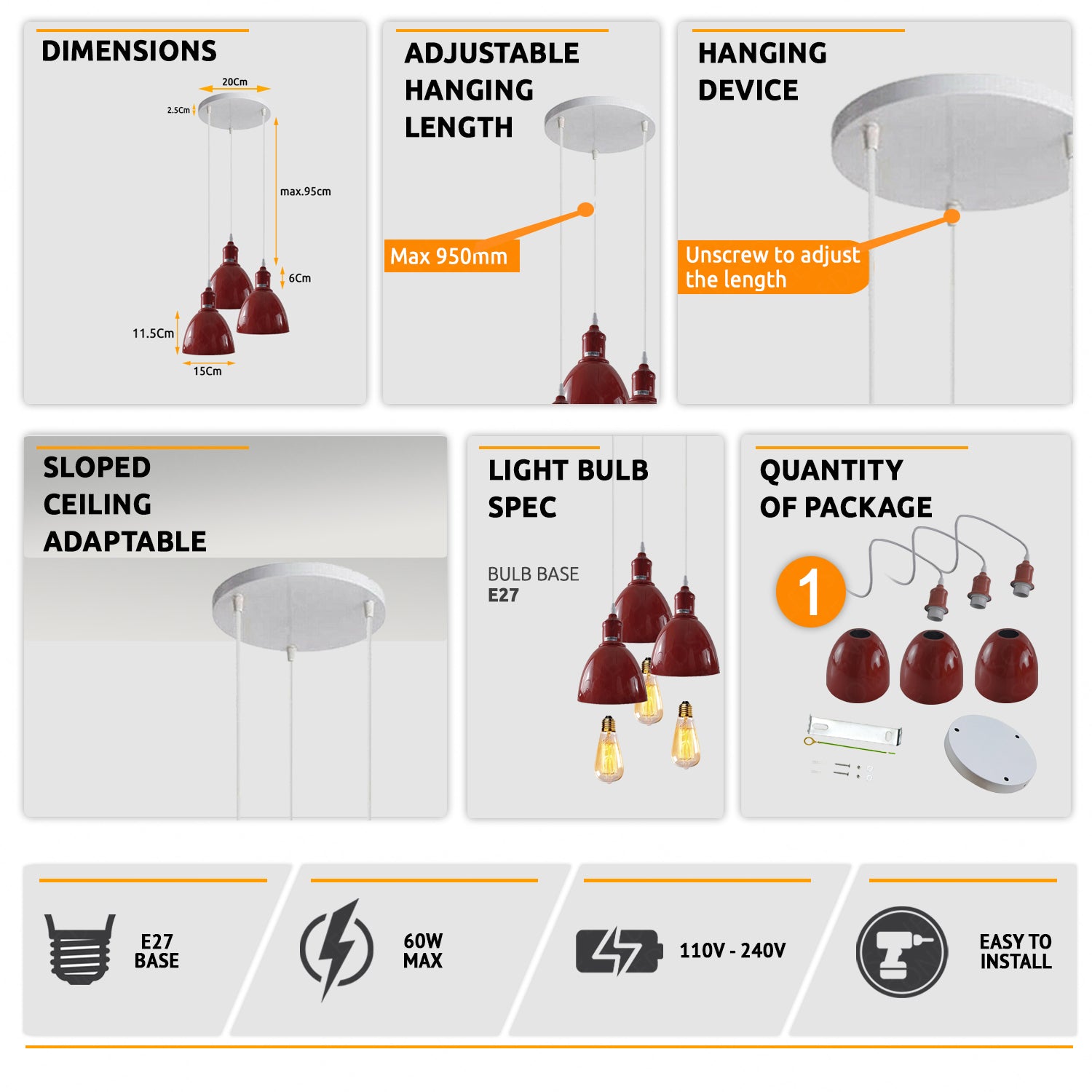 Lampade a sospensione industriali, lampada a sospensione a 3 luci, 15 cm, bordeaux~2500