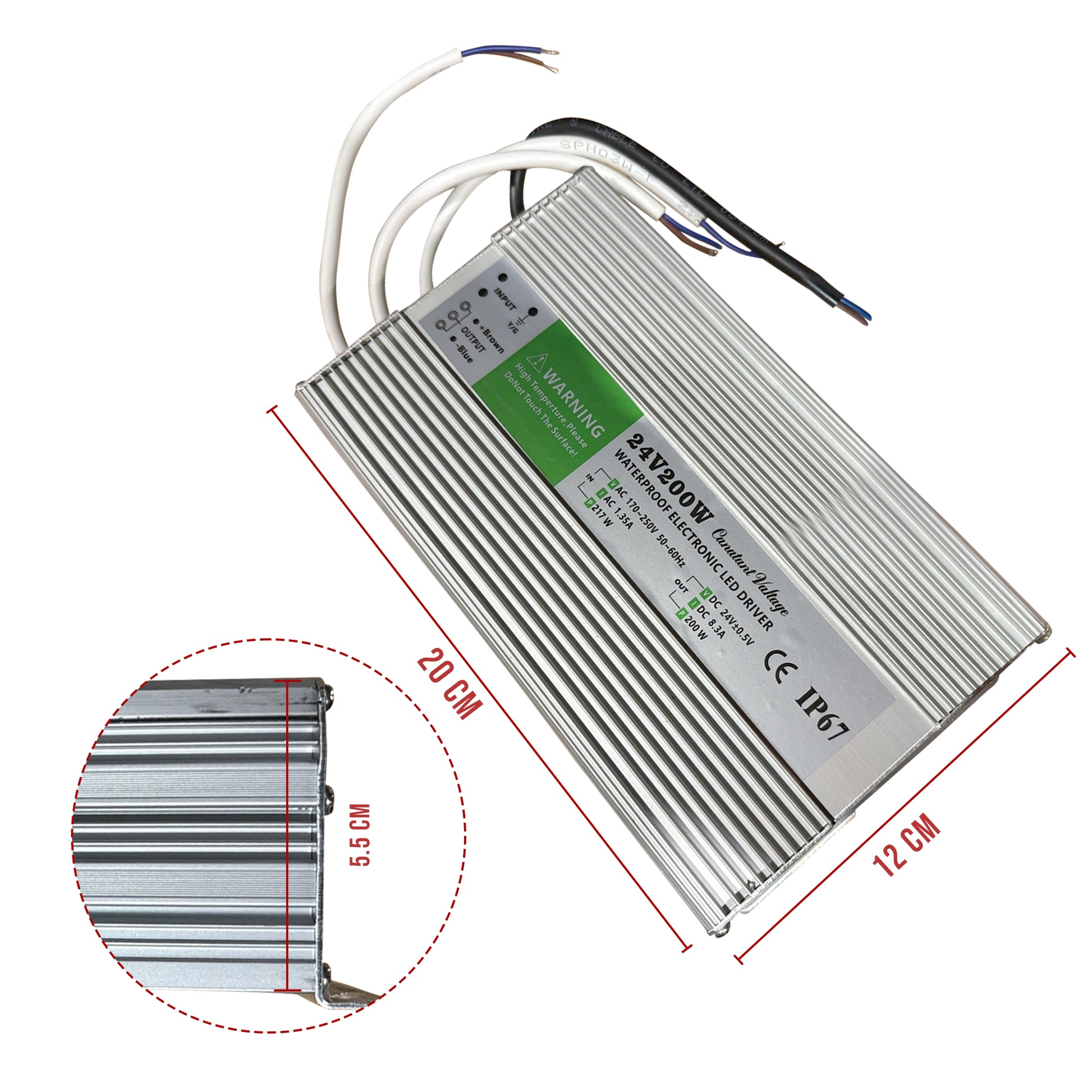 Caratteristiche del trasformatore di alimentazione LED impermeabile DC24V IP67 da 200W:
