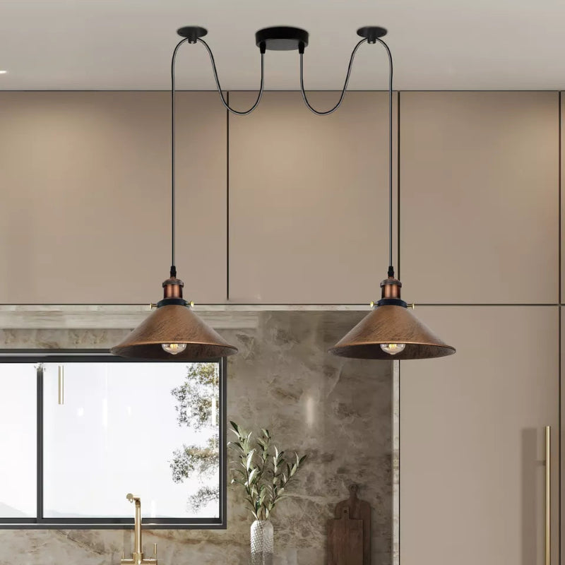 Lampada a sospensione retrò con braccio a due fili - E27 in ottone, cavo 2x100 cm ~2233