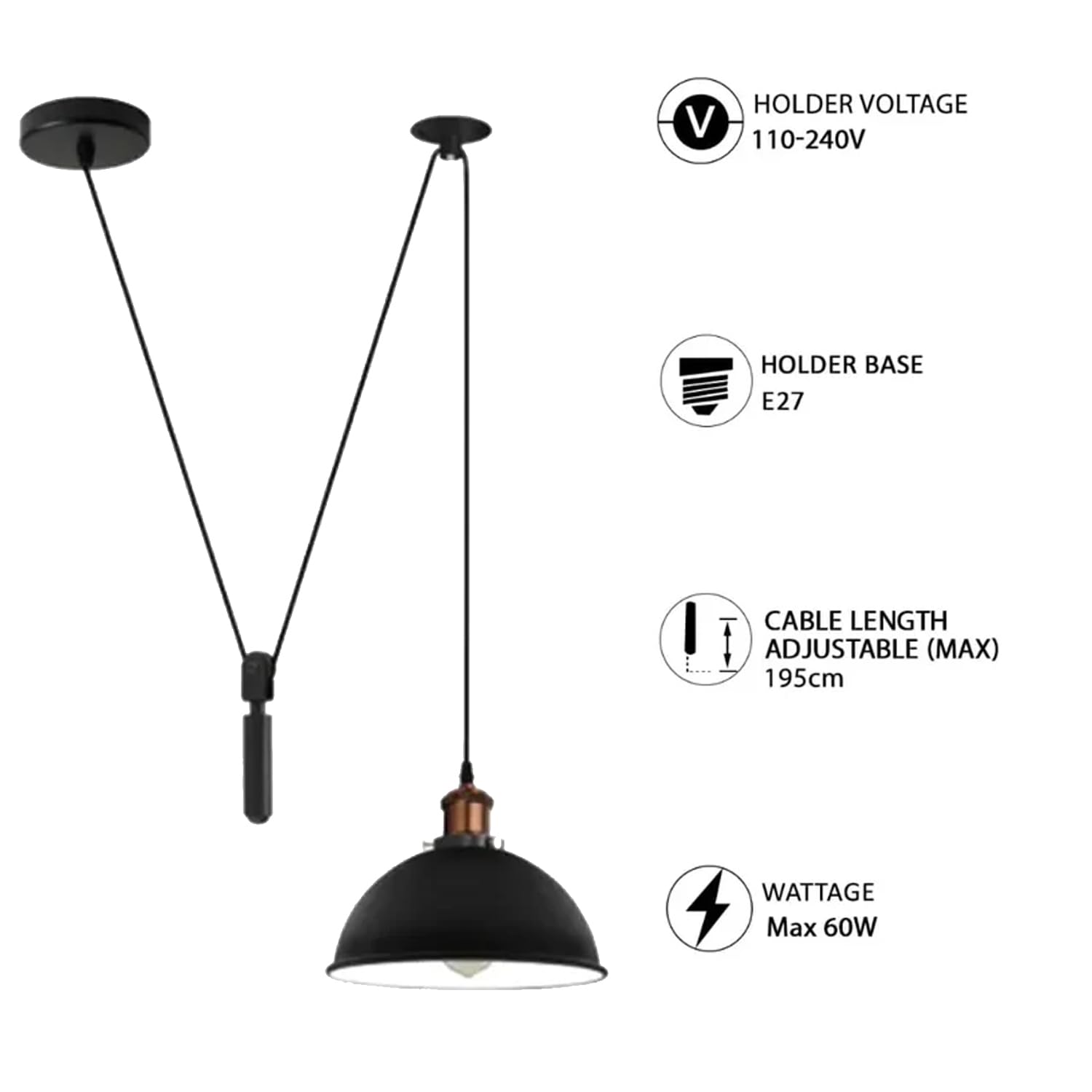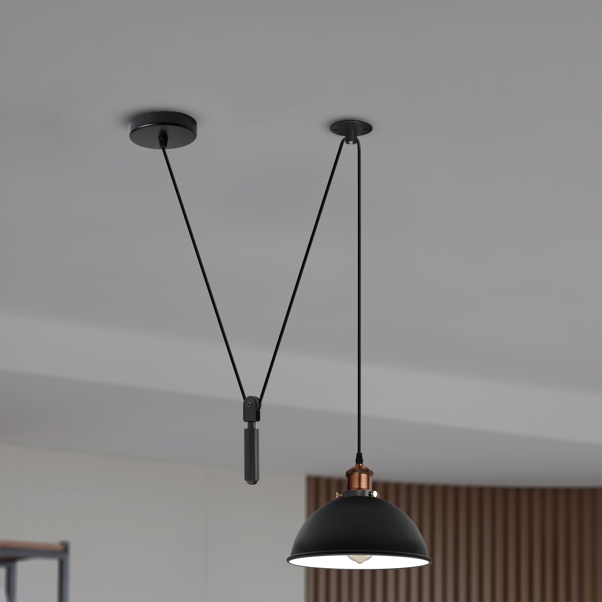 • Diese Pendelleuchte wurde entwickelt, um einzelne Metallschirme hinzuzufügen, und verstellbare Kordelgrößen, die zu verschiedenen passen, verstärken den Stil Ihres Interieurs.