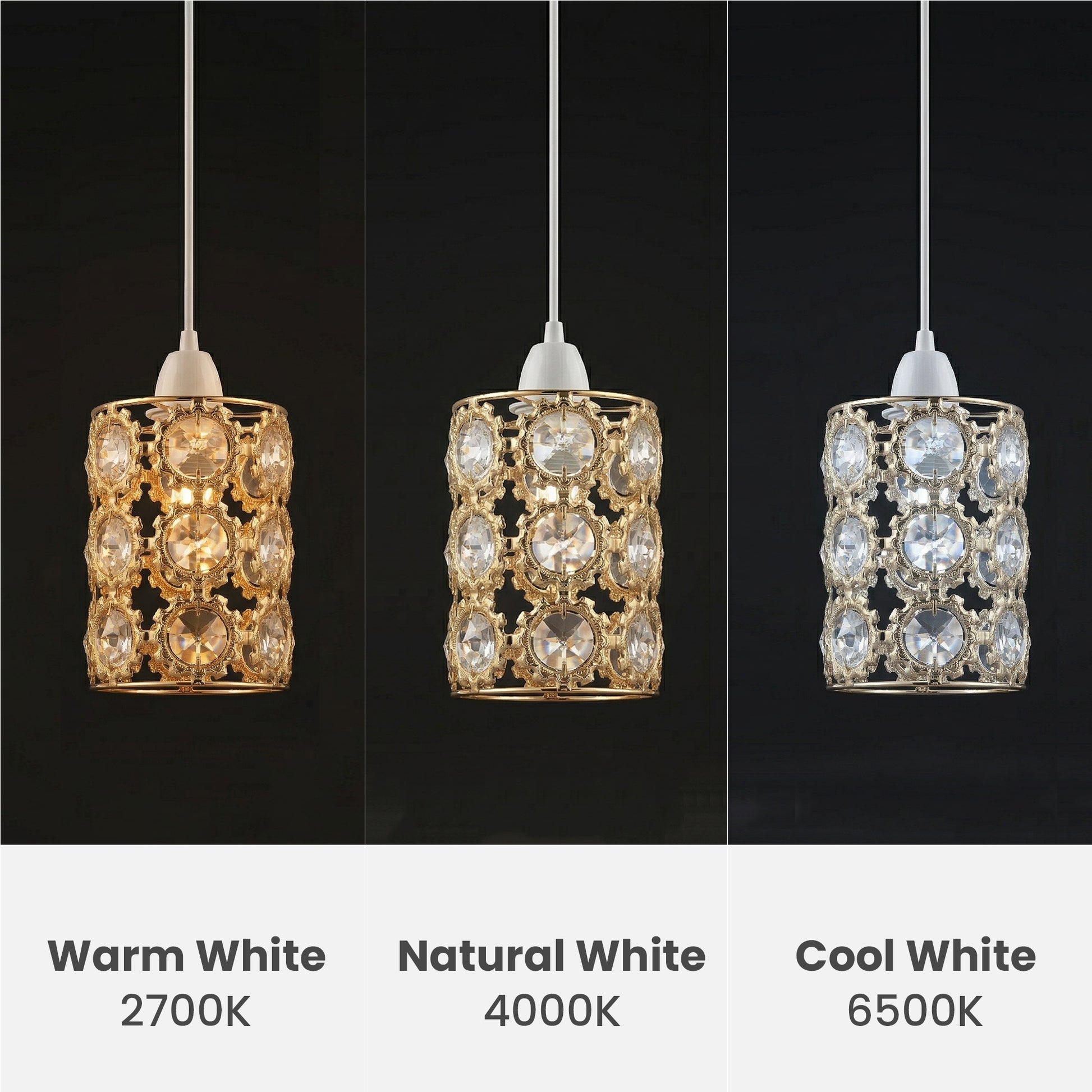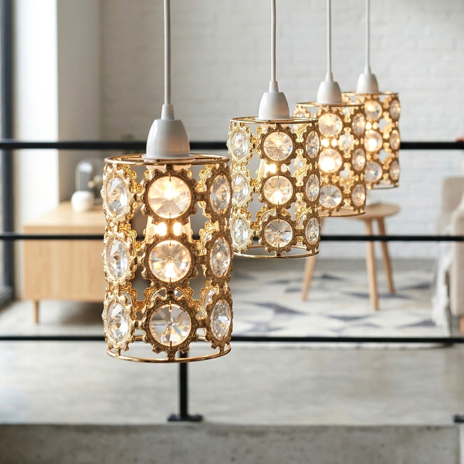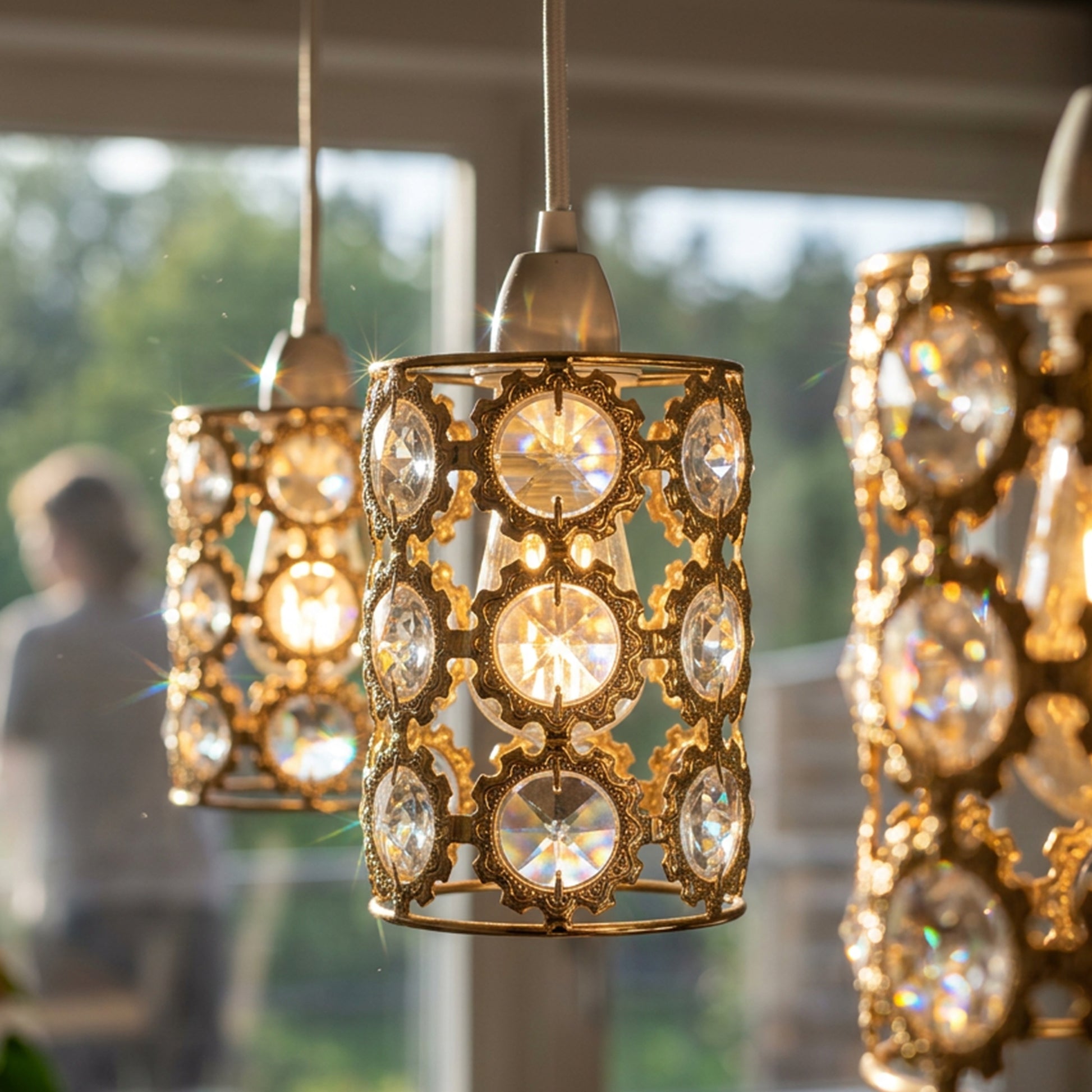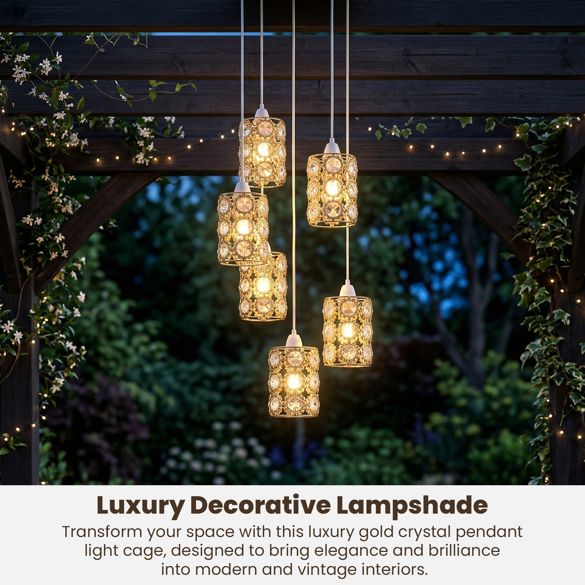 - L'elegante paralume in cristallo dorato aggiunge un lussuoso look da lampadario alla tua illuminazione.