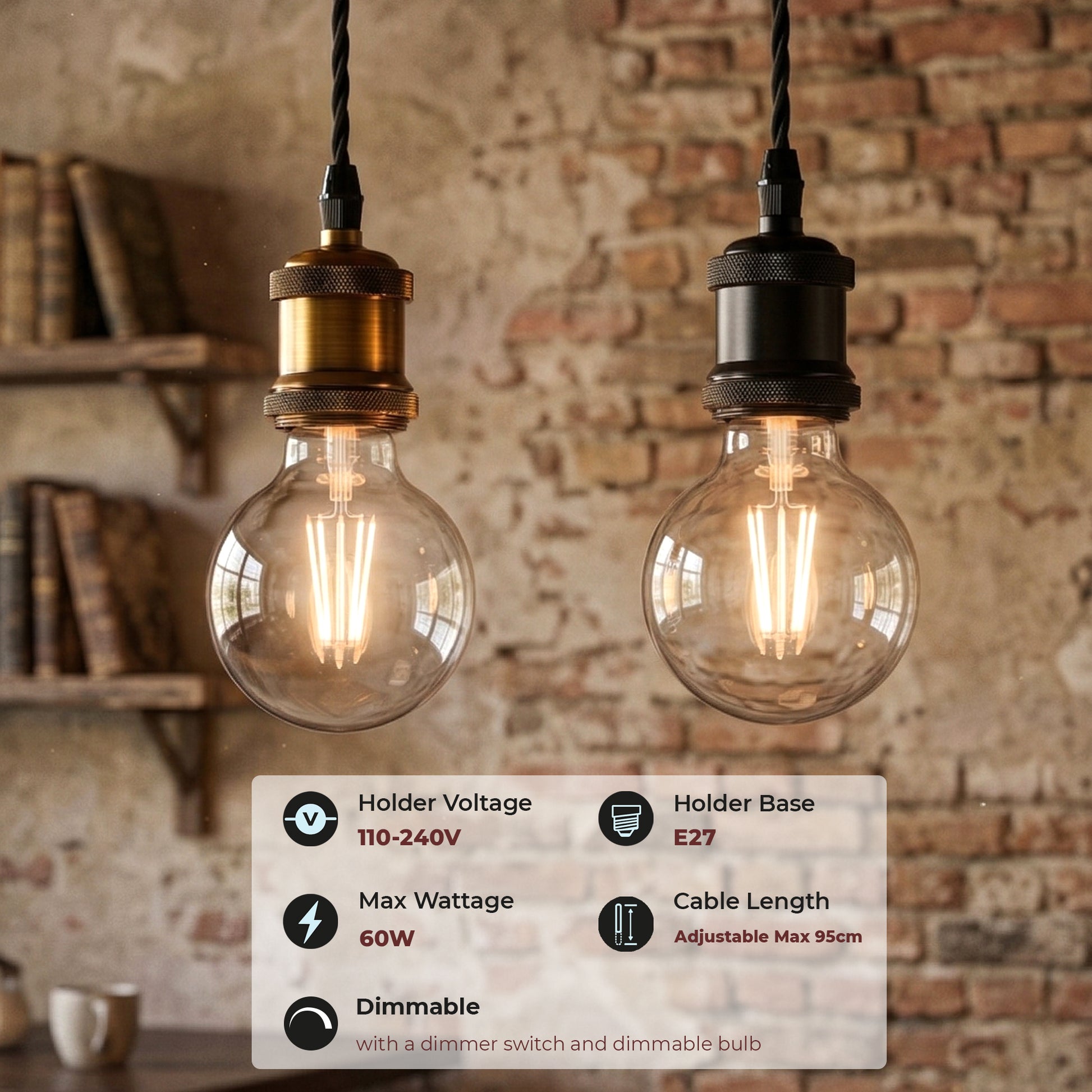 - Compatibile E27: Adatta per lampadine LED, a filamento, Edison e dimmerabili.
