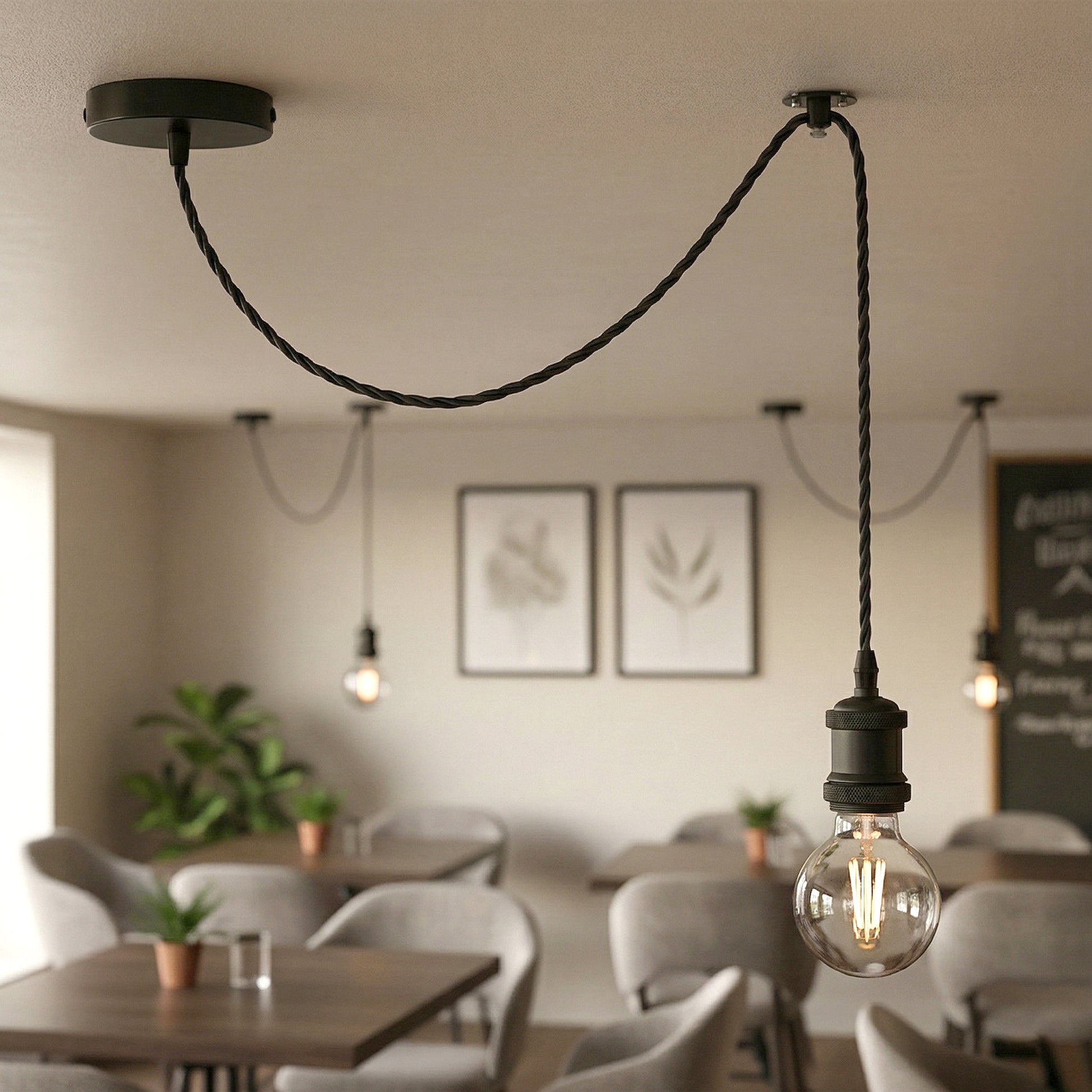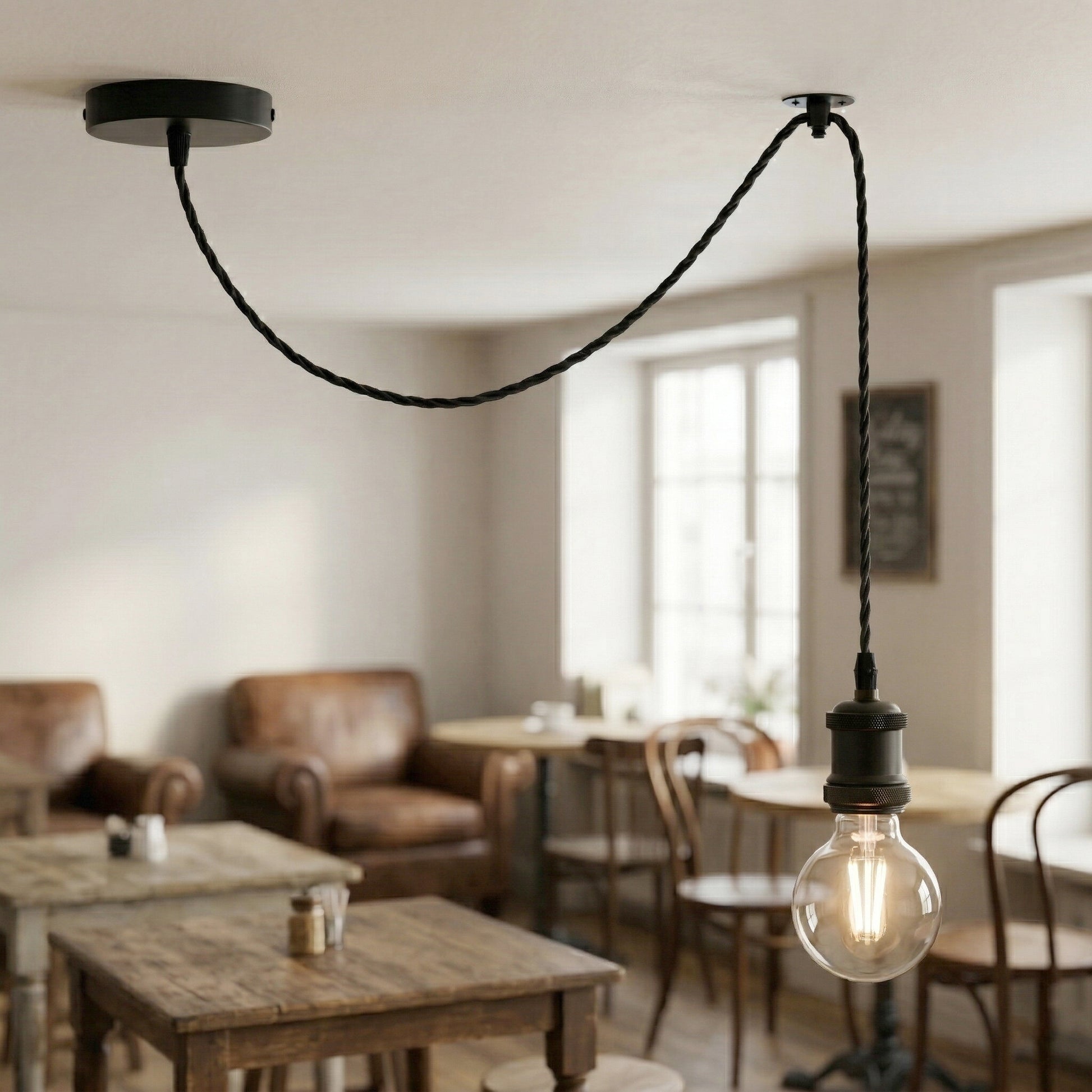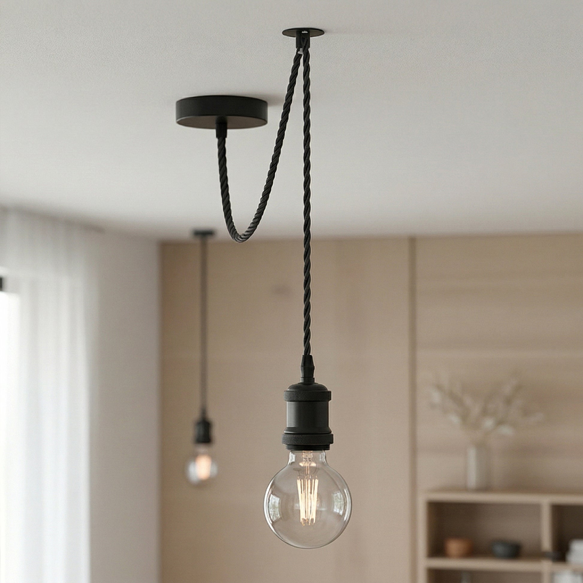 - Altezza di sospensione regolabile: Cavo a 3 fili intrecciati lungo 2 m, si adatta in modo flessibile a diversi soffitti.