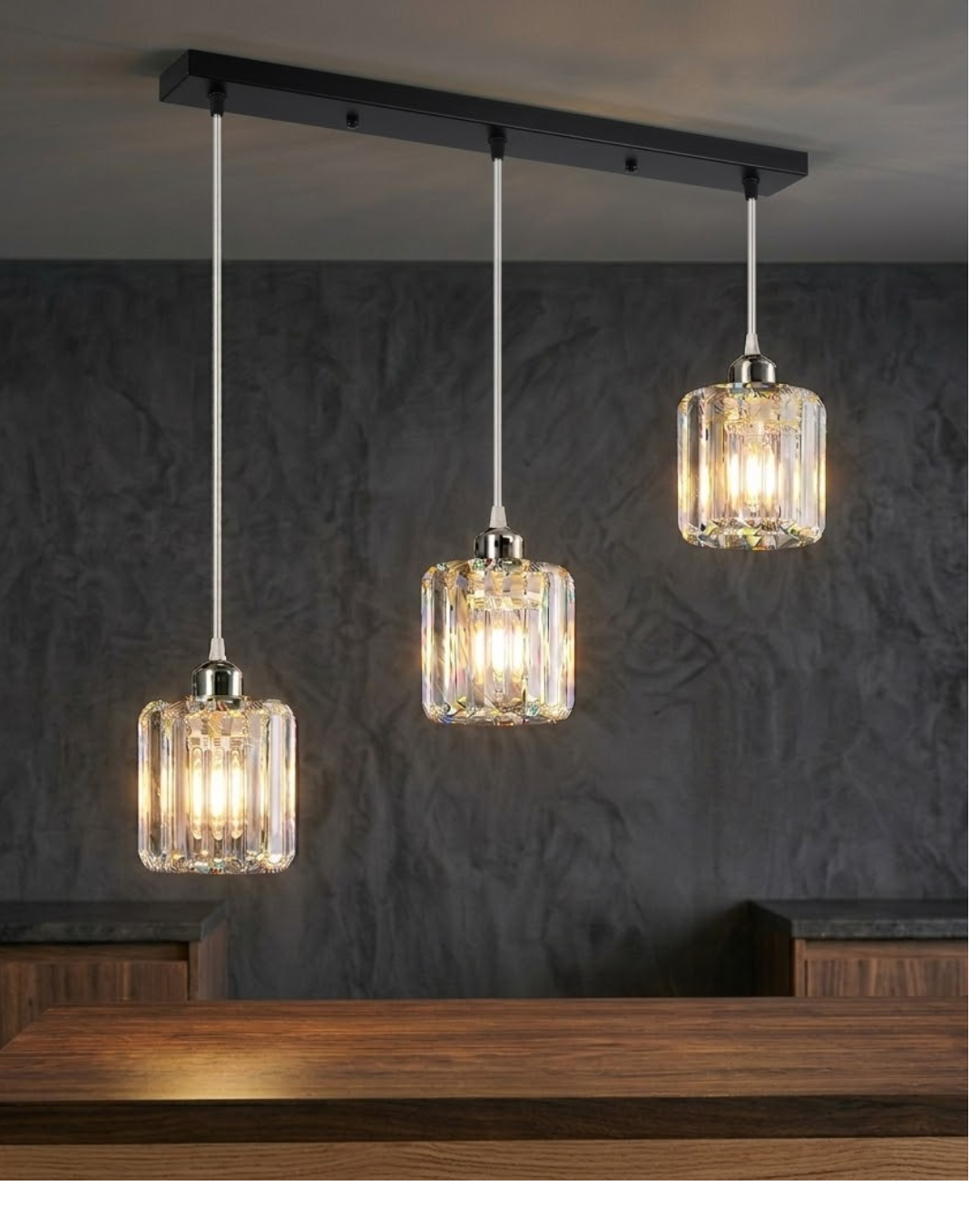 Lampadario a sospensione moderno a 3 luci in cristallo K9 ~3376