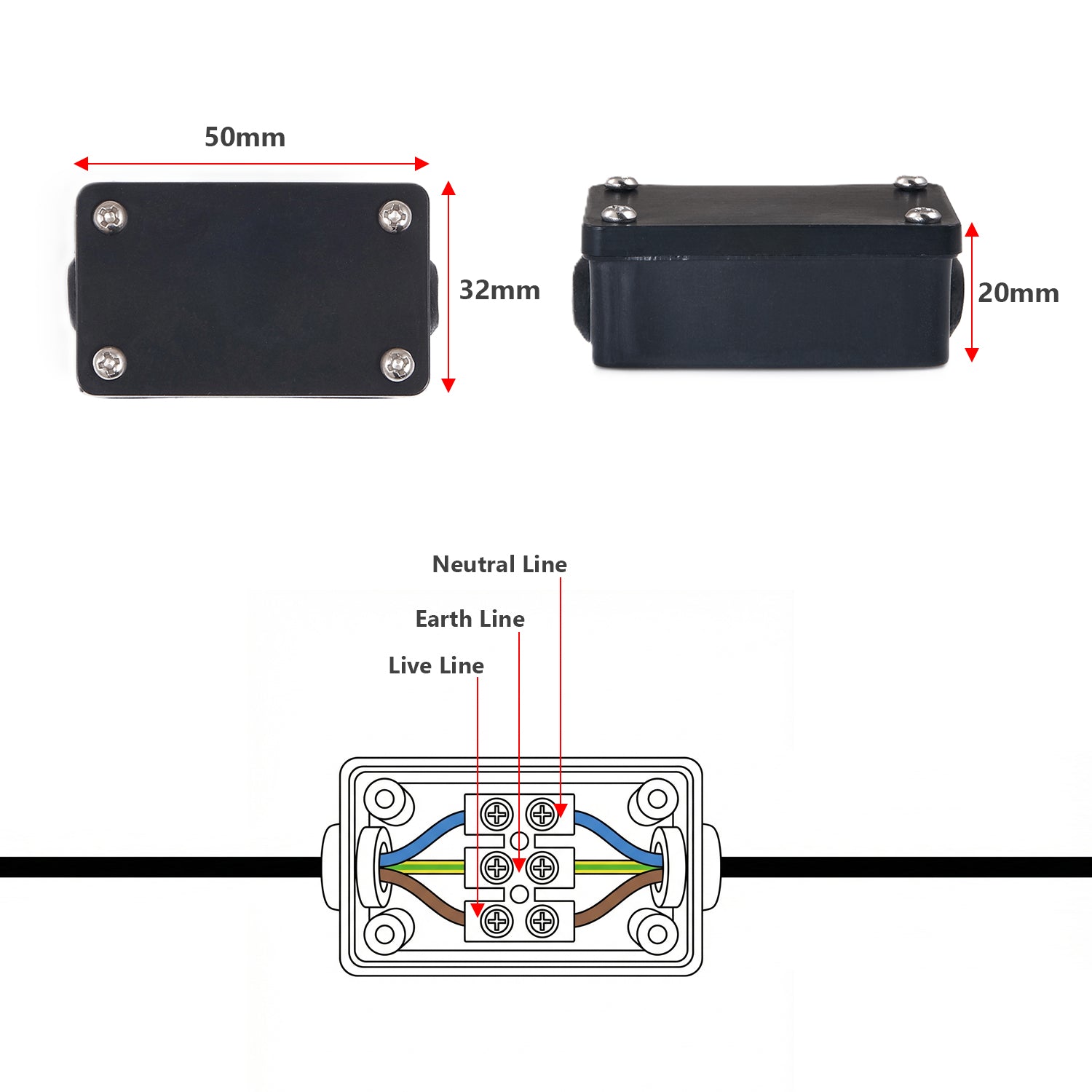 - Terminalkonfiguration: 3-Core (Live / Neutral / Earth)
