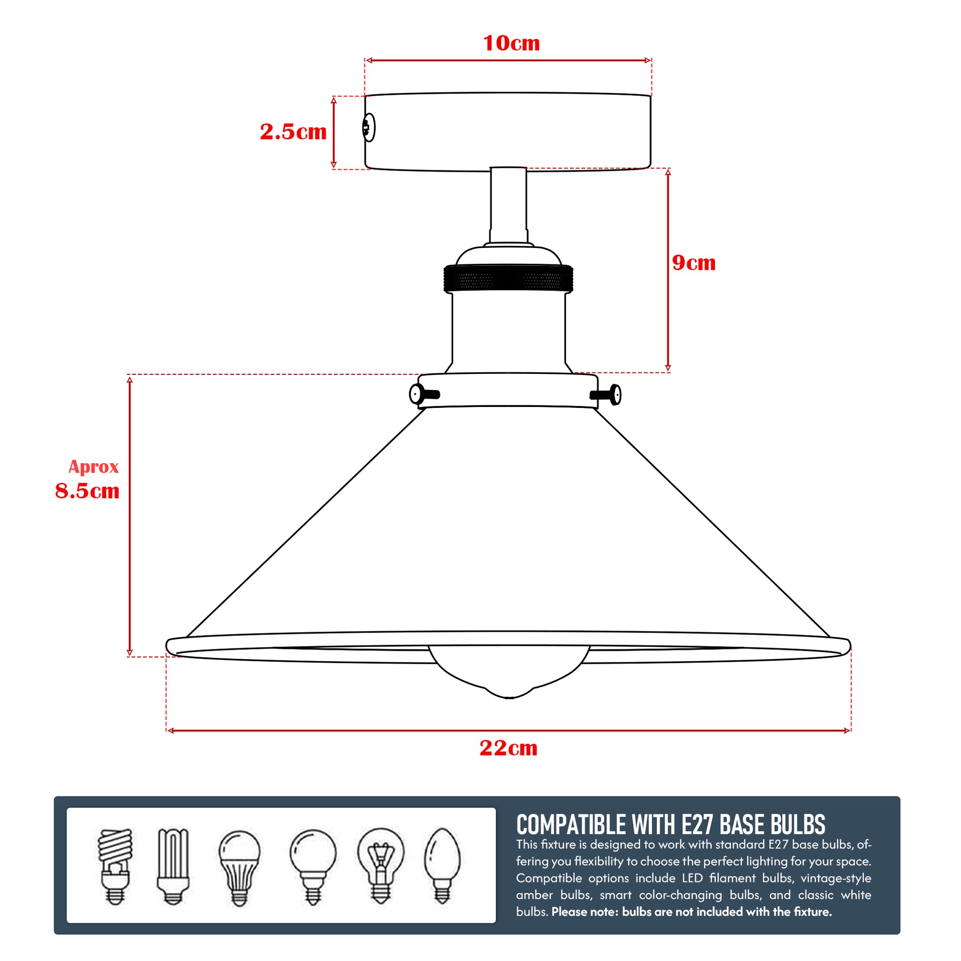 • Dimmbare Lichtsteuerung: Passen Sie die Helligkeit individuell an. In Kombination mit einem dimmbaren E27-Leuchtmittel und einem passenden Wandschalter steuern Sie die Lichtintensität nach Bedarf.