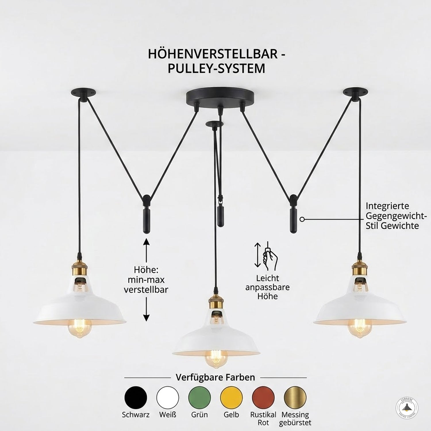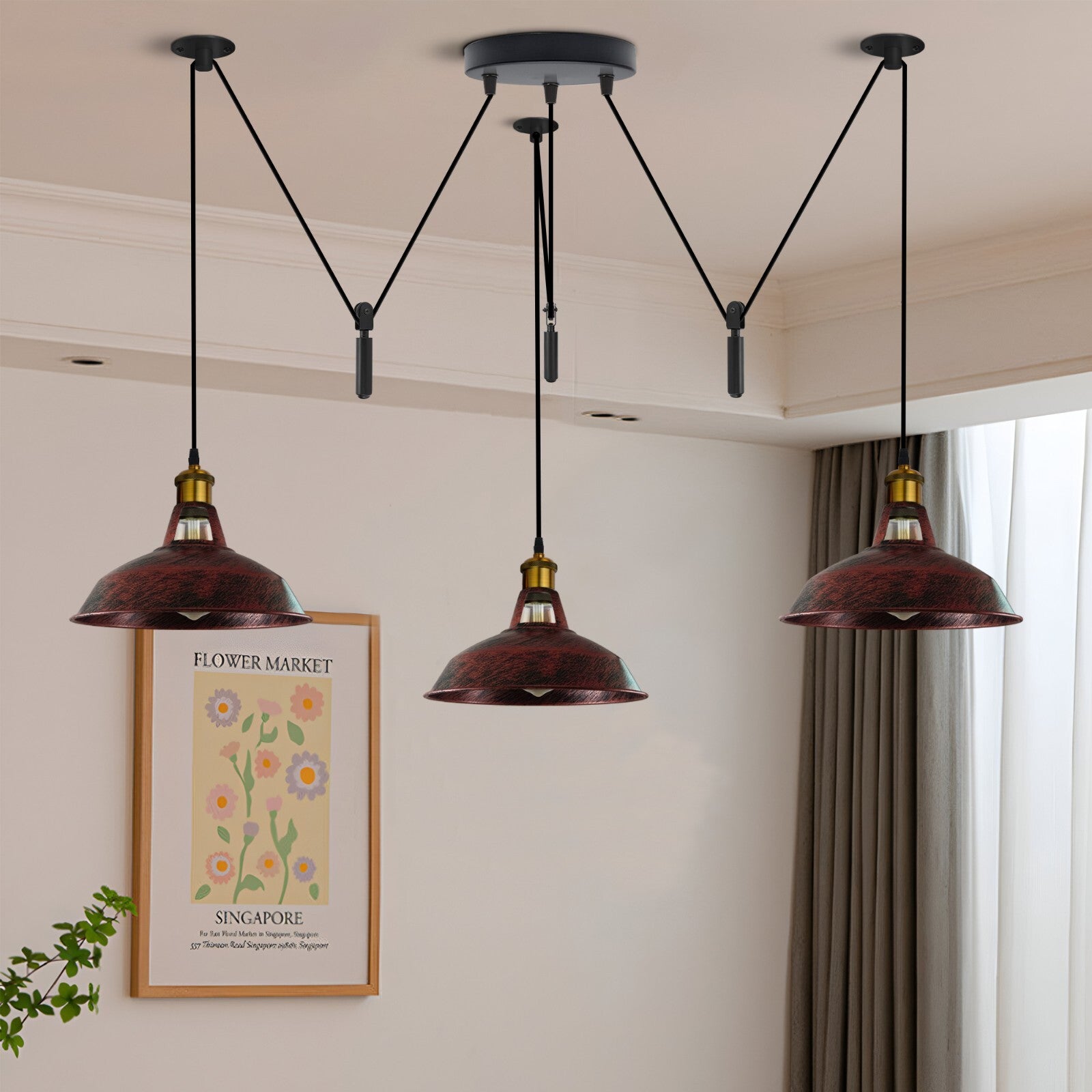 - Flexible Raumgestaltung: Jedes der drei 2-Meter-Kabel lässt sich individuell in der Höhe verstellen – ideal für Altbauten, Lofts und Räume mit Dachschrägen.