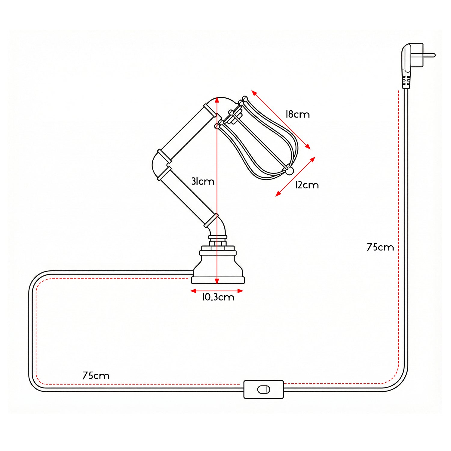Entwickelt für E27 Leuchtmittel funktioniert diese Lampe am besten mit Edison oder LED Leuchtmittel für einen Vintage Touch. (Leuchtmittel nicht im Lieferumfang enthalten). -