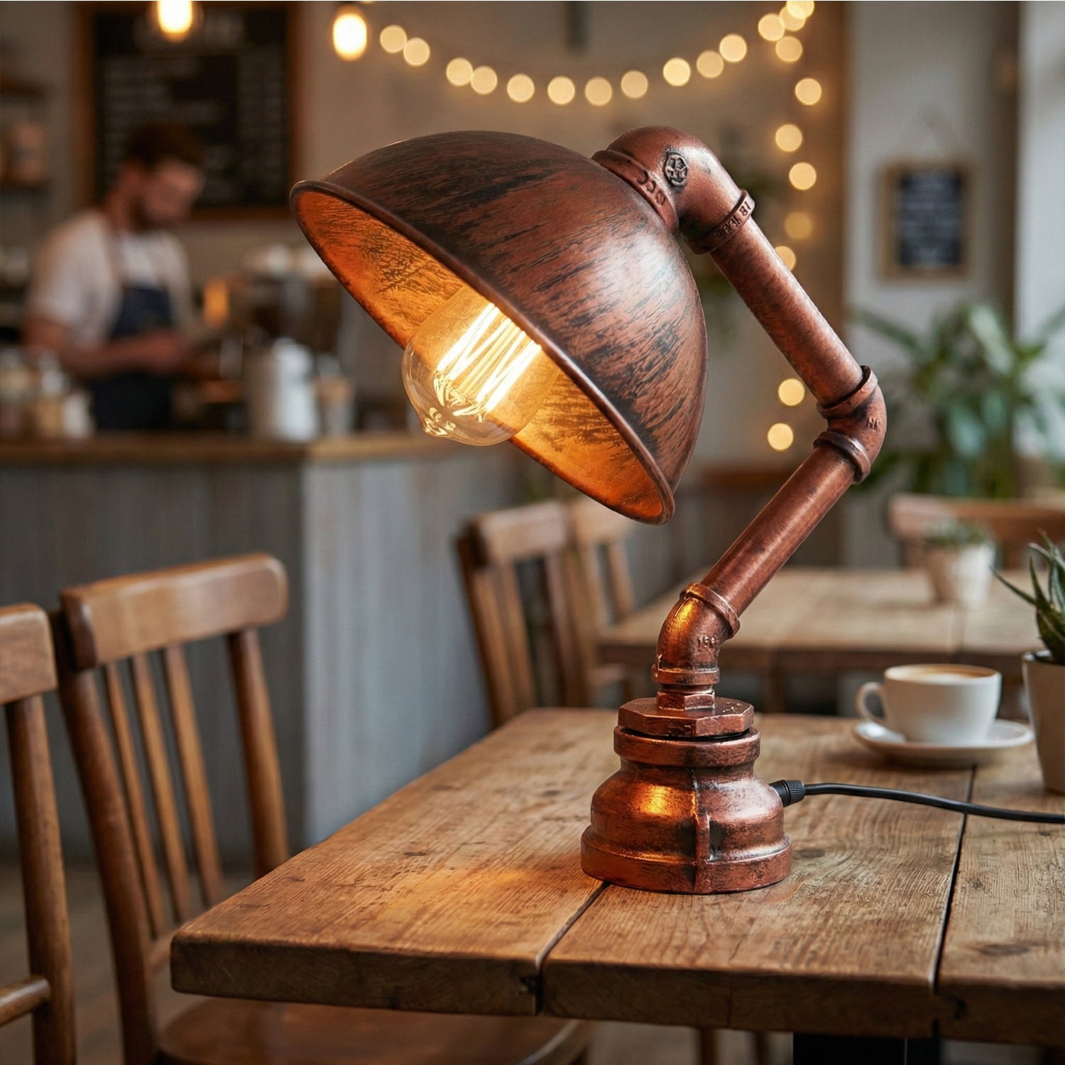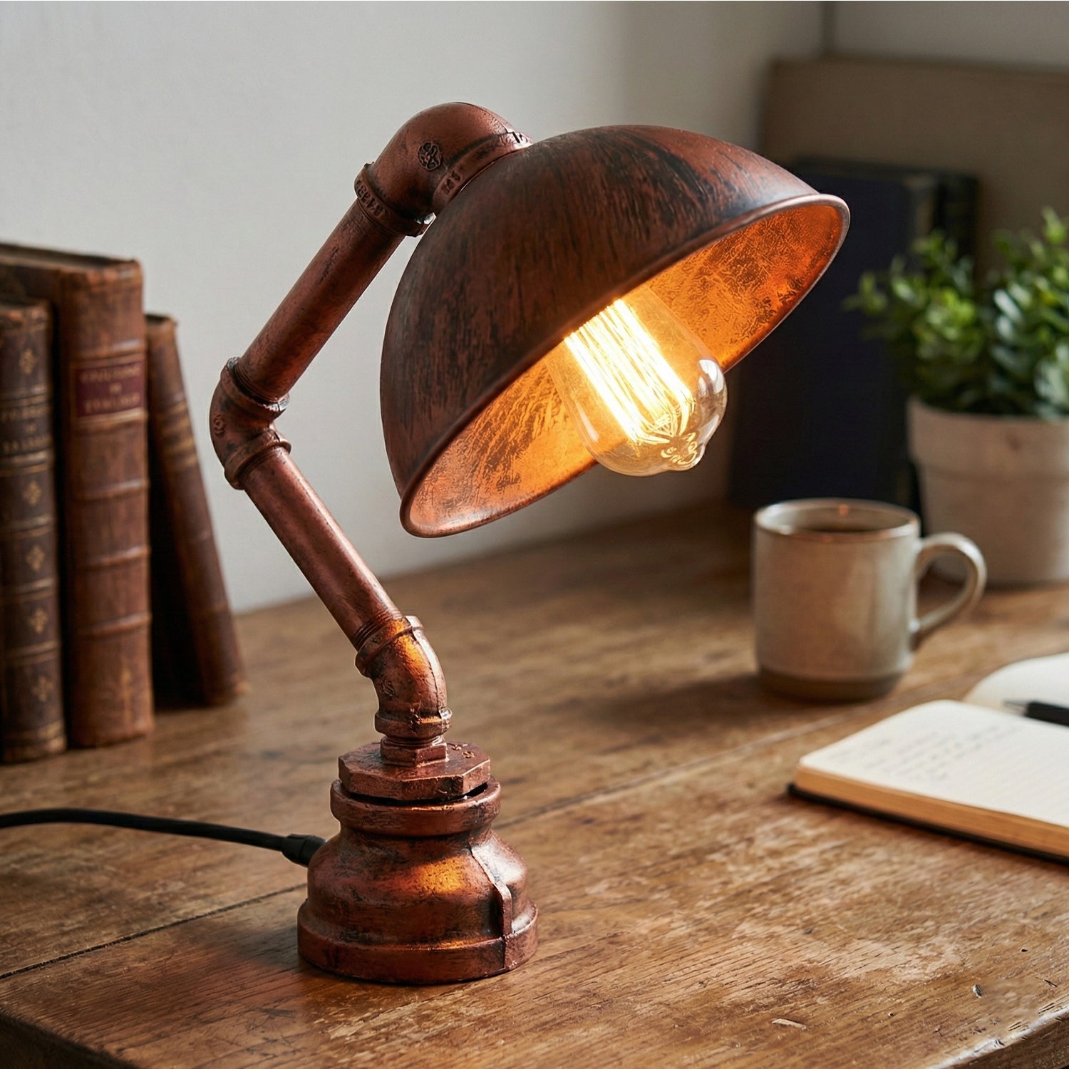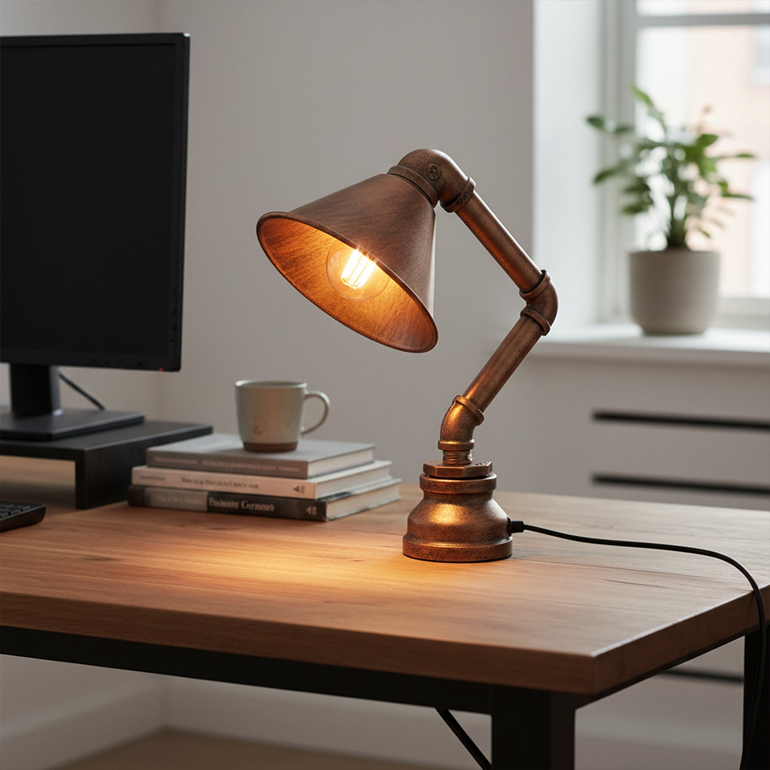 Diese Wasserpfeife Schreibtischlampe kombiniert steampunk Ästhetik mit industriellem Stil, was es zu einer perfekten Ergänzung für jeden Raum macht. Mit einem flacher Schirm und einzigartige Wasserleitung Design verleiht es Ihrer Einrichtung Wärme und Charakter. -