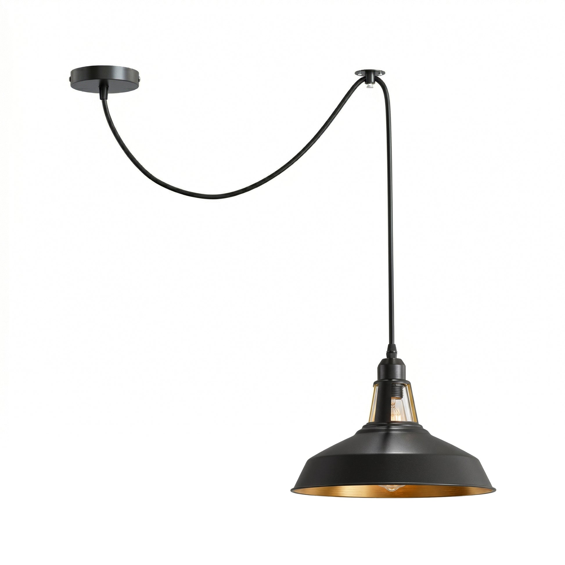 Industrie Pendelleuchte Schwarz Verstellbare Kabel Positionsleuchte E27 2m ~3666