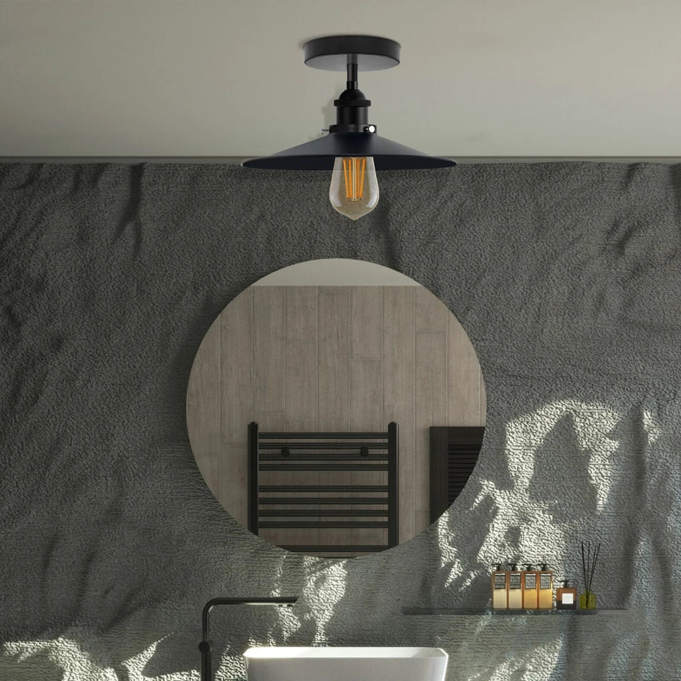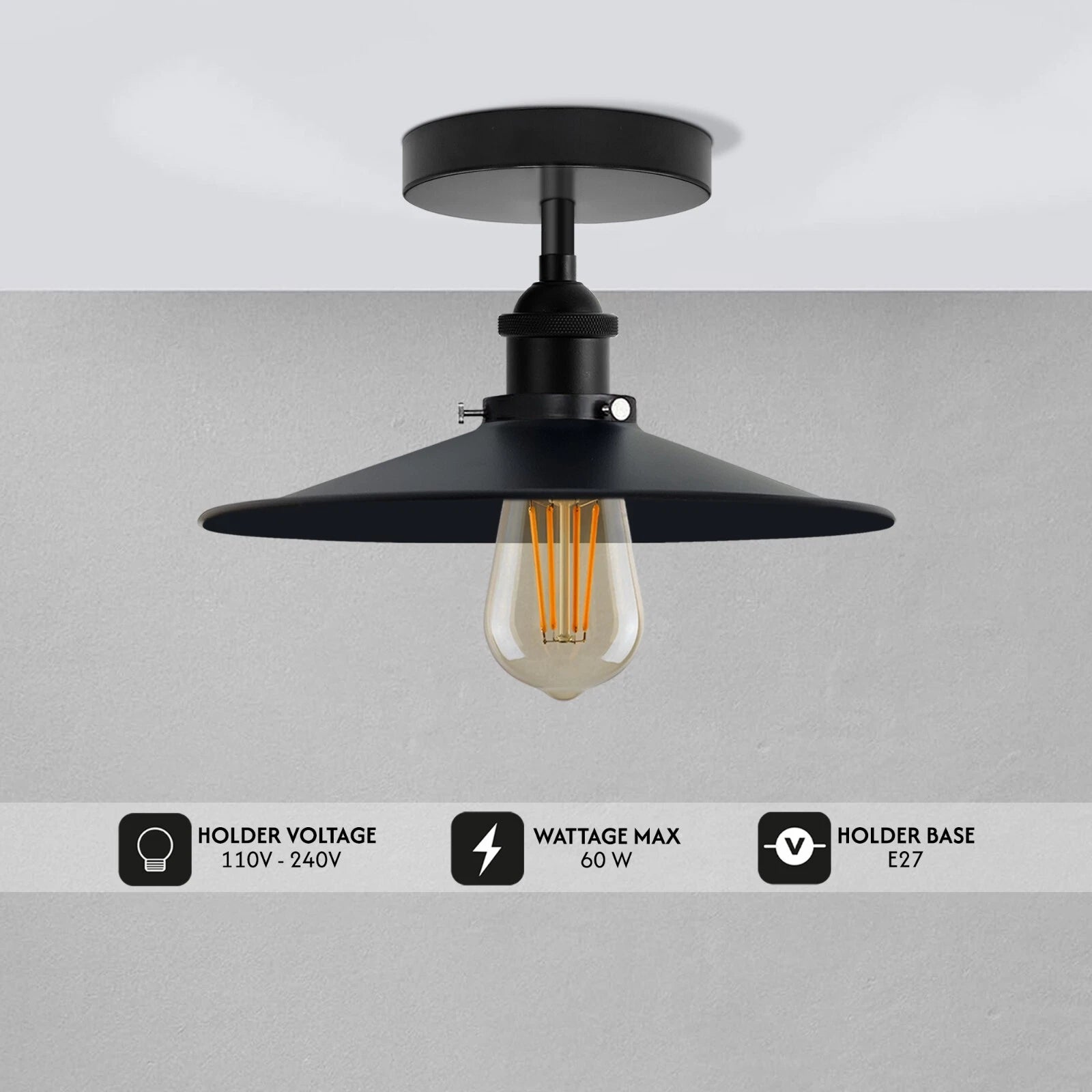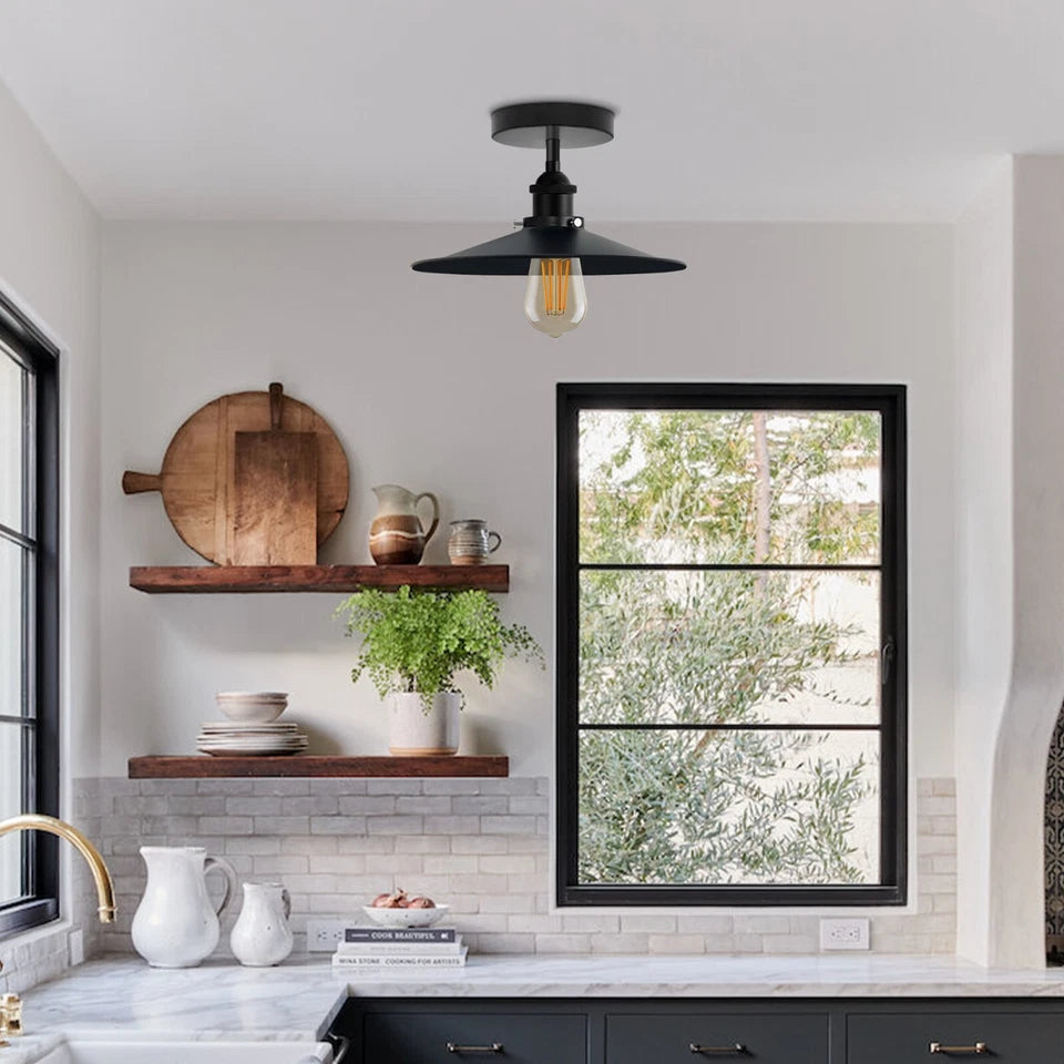 - Dieser schlichte, im Retro-Stil gehaltene, bündig montierte Deckenlampenschirm aus Metall bringt Licht in Ihren Wohnraum.