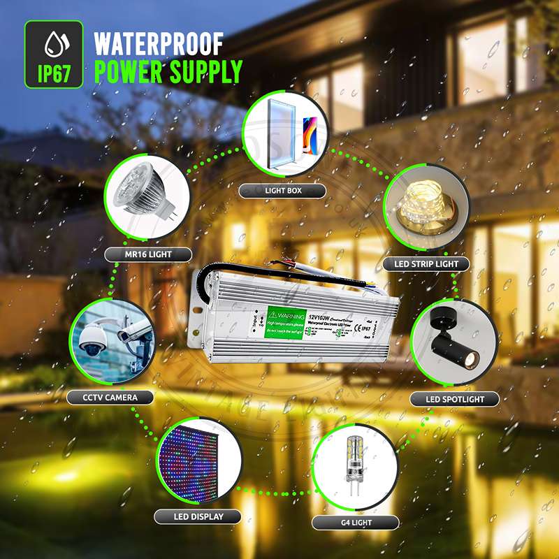 - Dieser DC12V IP67 LED-Transformator / Treiber wird verwendet, um Niederspannungs-LED-Lampen (12 V) mit Strom zu versorgen. CCTV-Kamera, 3D-Drucker und viele andere Geräte, die eine DC12V-Konstantspannungsversorgung benötigen.